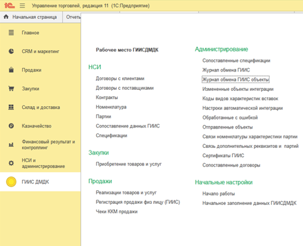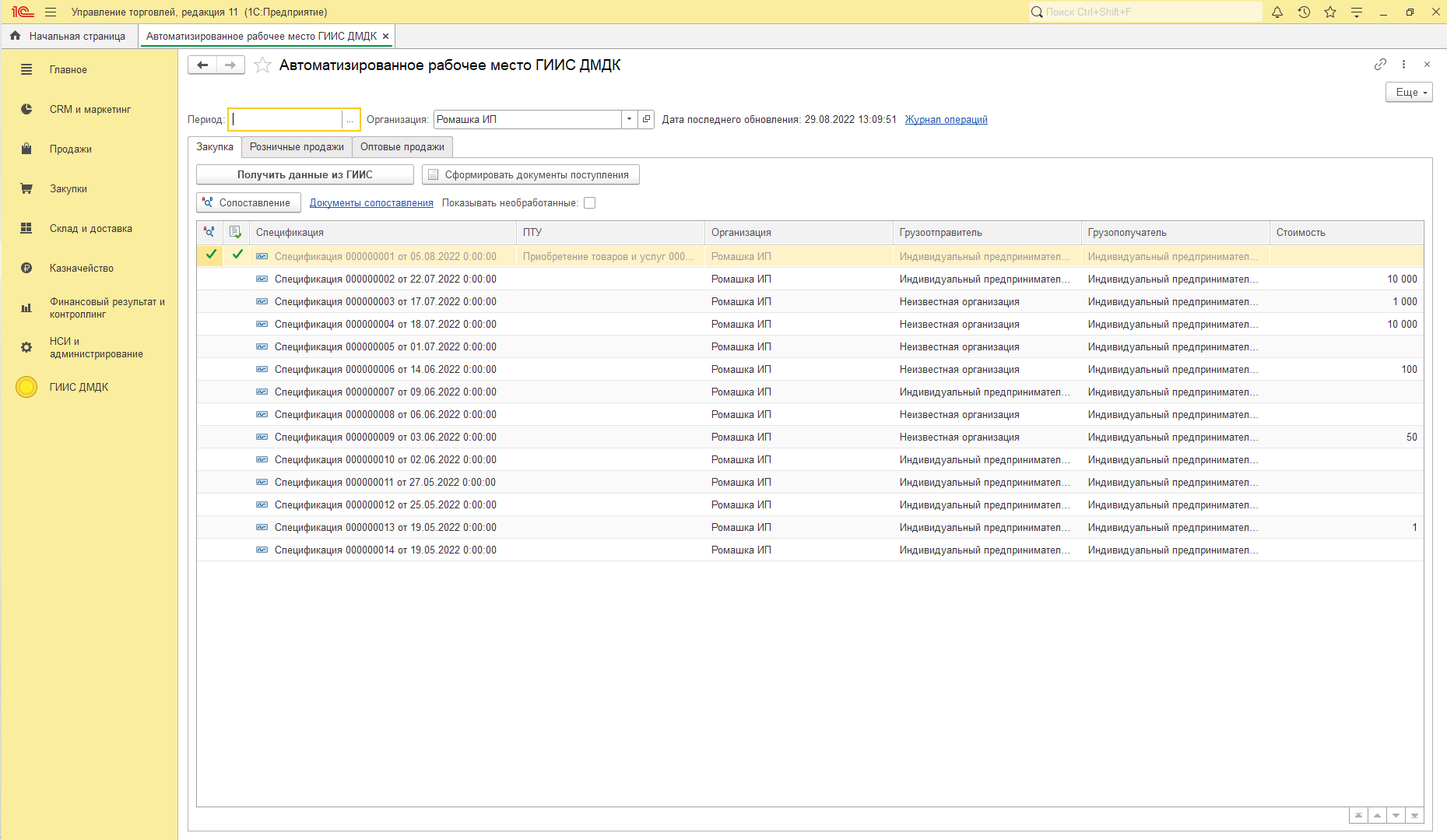 Получение первоначальных данных из системы ГИИС (Партий, спецификаций, контрактов).